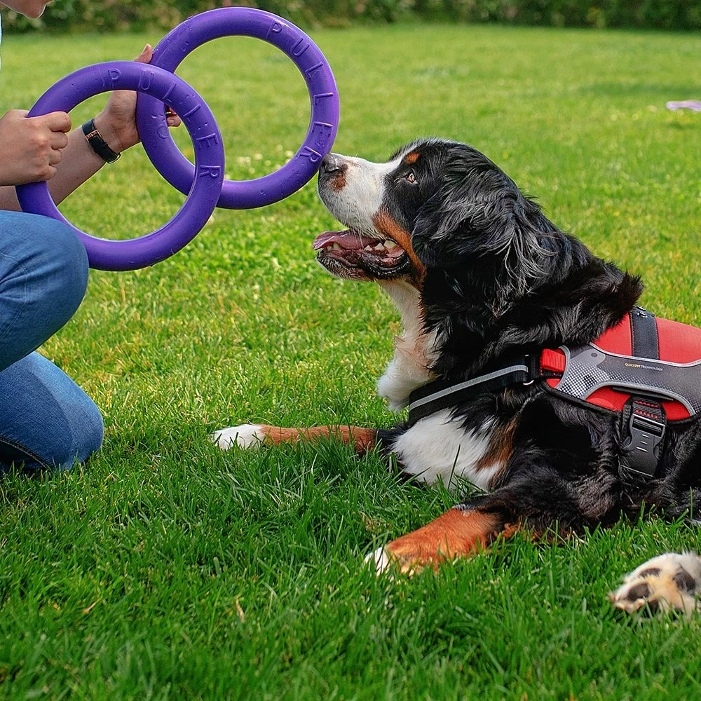 Met deze stevige ring leer jij jouw hond supergoed apporteren, train je op de reflexen en op de snelheid. Door de zachte buitenkant, zal de ring jouw hond geen pijn doen tijdens het vangen. De Puller Standaard is makkelijk mee te nemen naar het park, bos of strand. Een leuk speeltje voor baas en hond!