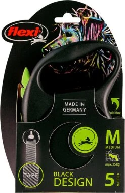 De rollijn Black Design tape van Flexi heeft een strak zwart design met roze details. De hondenriem heeft een maximale vrije looplengte van 5 meter en is ideaal om lange wandelingen mee te maken. Geschikt voor kleine honden tot maximaal 25 kg.