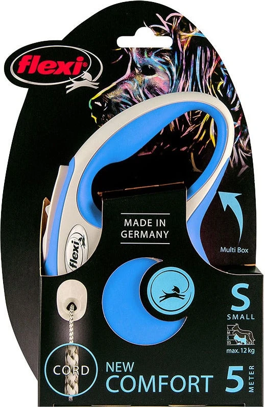 De rollijn New Comfort koord van Flexi is door het perfect afgestemde, tweekleurige design een echte blikvanger. De hondenriem heeft een maximale vrije looplengte van 5 meter en is geschikt voor kleine honden tot maximaal 12 kg.
