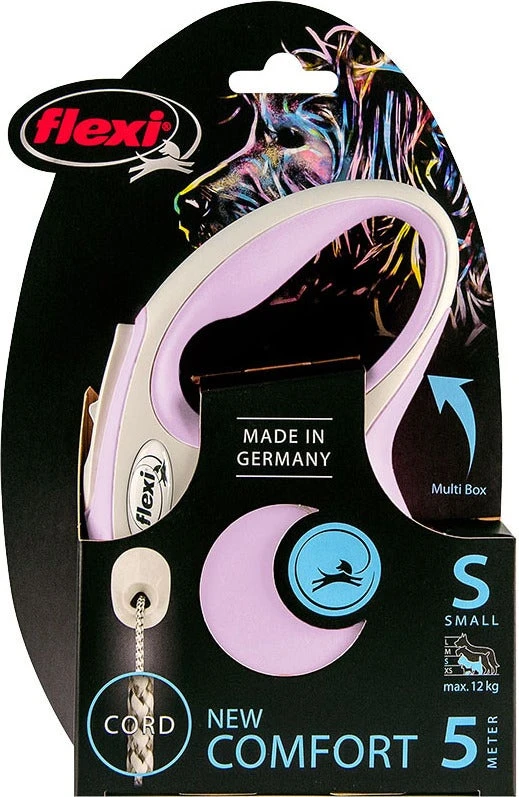 De rollijn New Comfort koord van Flexi is door het perfect afgestemde, tweekleurige design een echte blikvanger. De hondenriem heeft een maximale vrije looplengte van 5 meter en is geschikt voor kleine honden tot maximaal 12 kg.