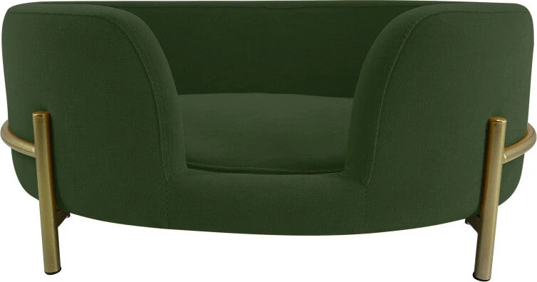 Hondenmand Olivia van Intratuin heeft een moderne en luxe uitstraling. De ovale mand is bevestigd in een metalen, gouden frame met vier poten. Hierdoor lijkt het net een kleine bank, speciaal voor jouw hond!