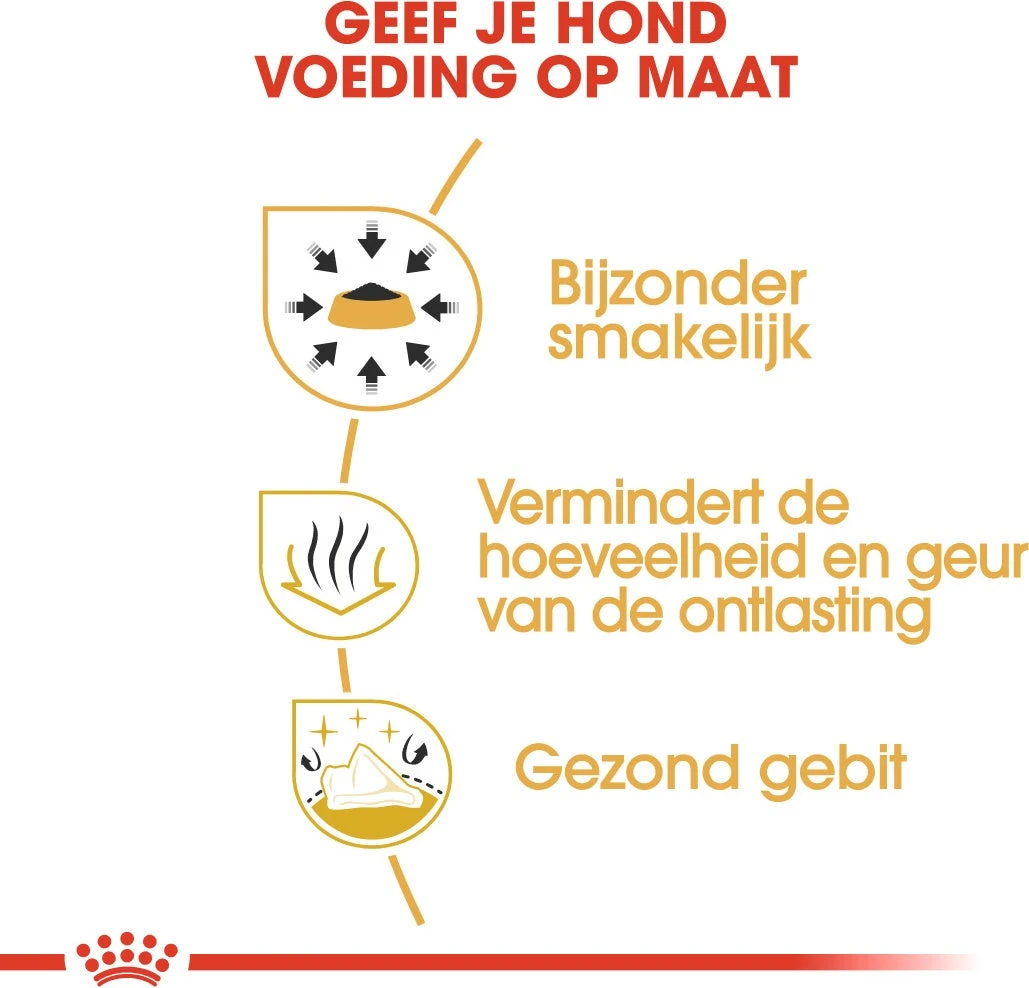 De grootte en vorm van de brokjes van Royal Canin Chihuahua Adult is aangepast aan de kleine kaken van de Chihuahua. De brokjes zijn gemakkelijk op te pakken en te kauwen. Daarnaast helpen de voedingsstoffen in de voeding de goede darmpassage ondersteunen, wat helpt de hoeveelheid en geur van de ontlasting te verminderen. De calciumvangers in Royal Canin Chihuahua Adult helpen de vorming van tandsteen te verminderen.