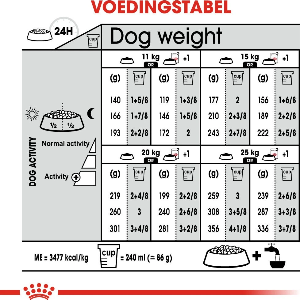 Deze hondenvoeding bevat maar liefst 14% minder calorieën dan gewone voeding voor volwassen honden. Onze Sterilised voedingsprogramma bestaat uit twee componenten: krokante brokken en een overheerlijk natvoer in een pouch. Beiden zijn compleet van samenstelling en vullen elkaar perfect aan. Volg de voedingsrichtlijnen als je van plan bent om je hond gemengd te voeren, zodat zij de optimale hoeveelheden droog- en natvoeding voorgeschoteld krijgt.